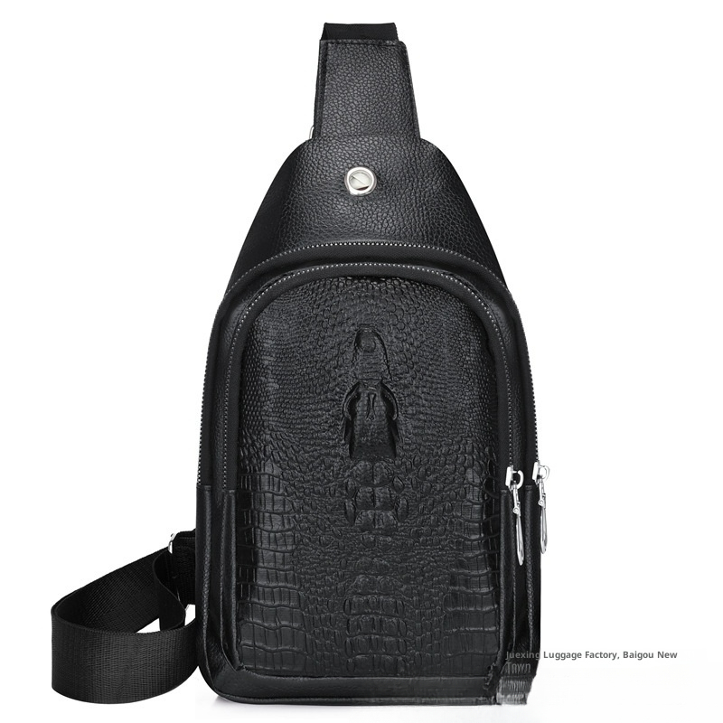 001 2023 New Men's Crocodile Pattern Trendy Fashion Casual Crossbody PU Sports Versatile Lightweight Front Chest Bag