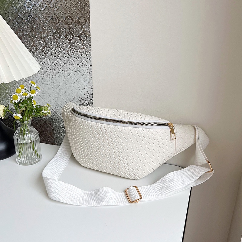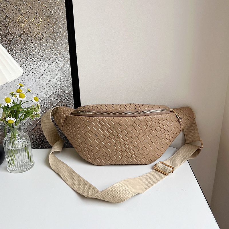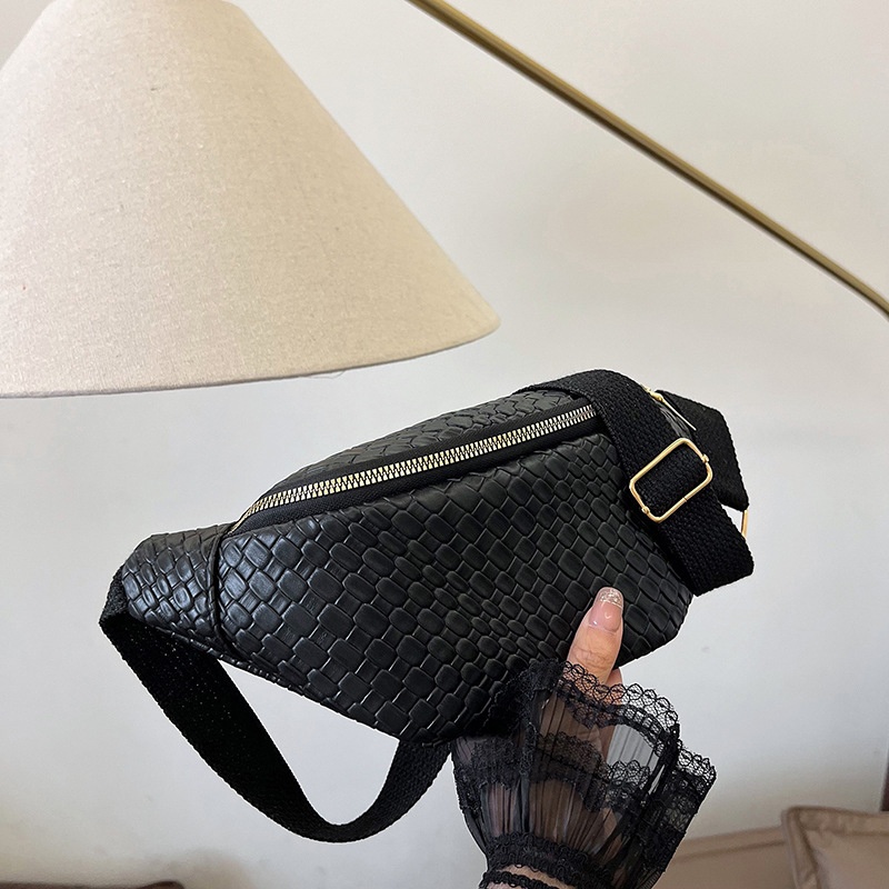001 2024 New Retro PU Woven Waist Trendy Versatile Single Shoulder Crossbody Women's Chest Bag