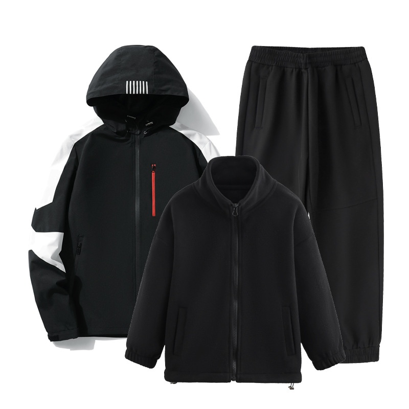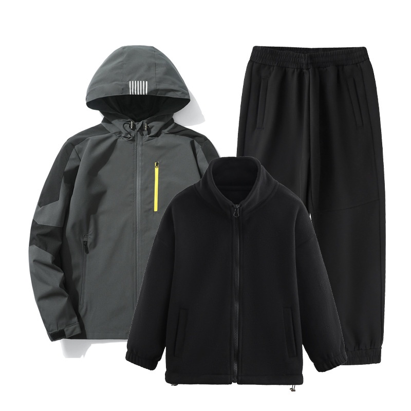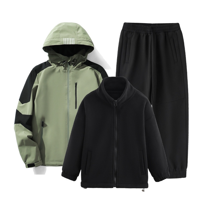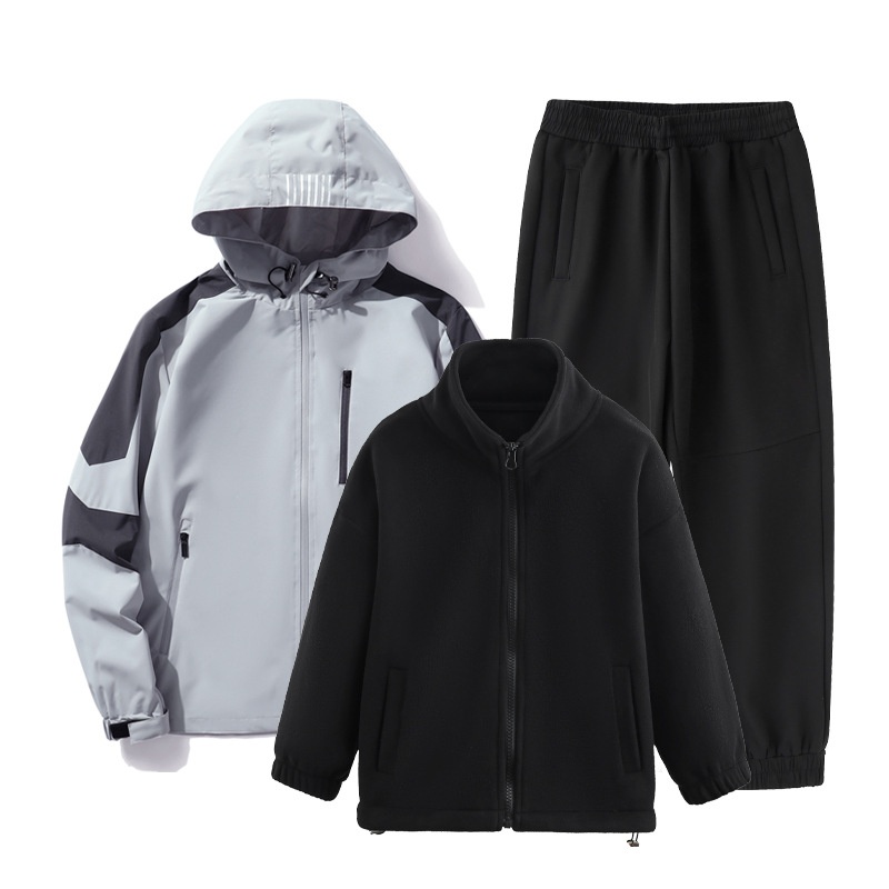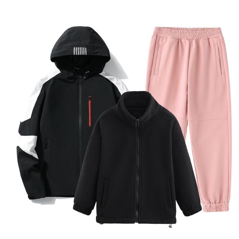 001 Children's Softshell Jacket Pants Set For Boys And Girls, Fleece-Lined, Waterproof, Windproof, Warm Three-Piece Outfit