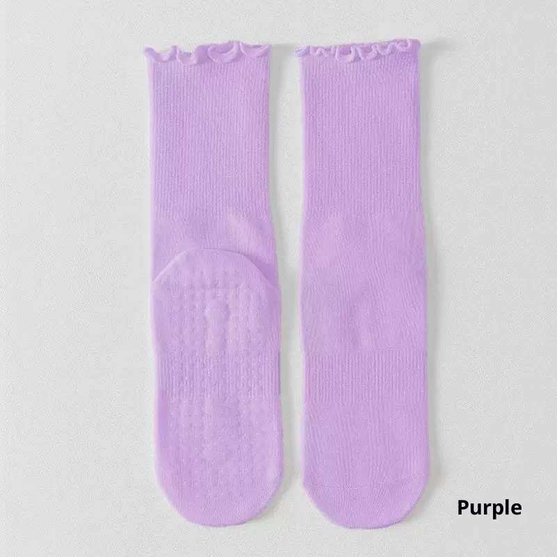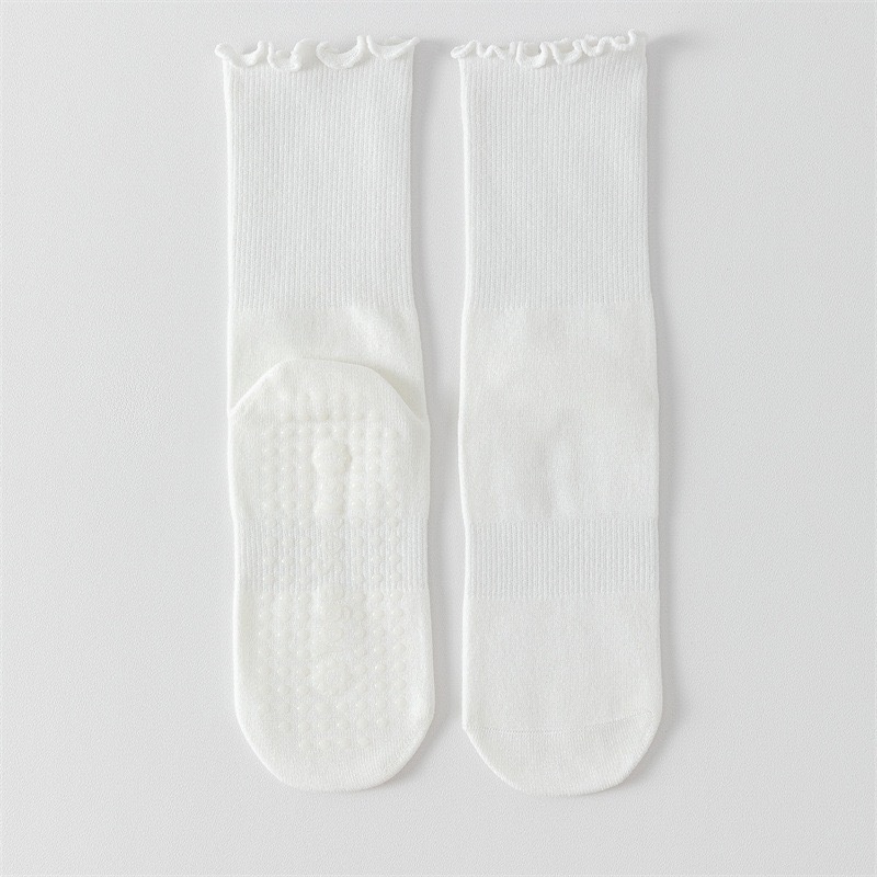001 Spring Summer Yoga Mid-Calf Seamless Ruffled Edge Sports Non-Slip Running Pilates Thin Shock-Absorbing Fitness Socks