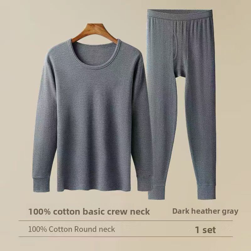 100% Cotton Men's Thermal Underwear Set, Thin Round Neck Full Cotton Top and Bottom, Warm and Comfortable for Autumn