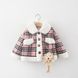 Jachetă nouă de iarnă pentru fete, cusături în carouri și rever îngroșat din catifea, 2021, cu pandantiv tip ursuleț 1285