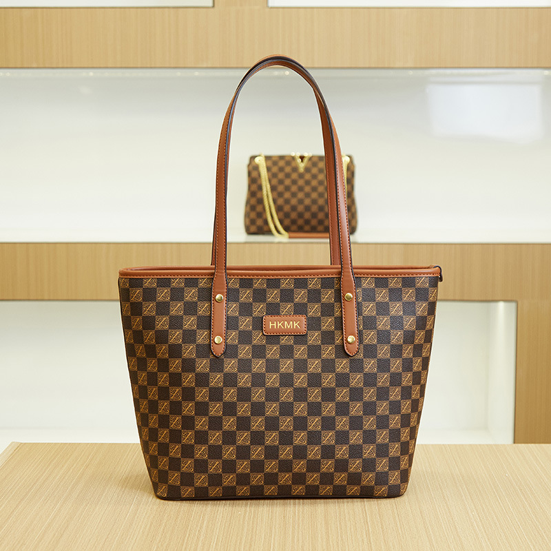 2023 New Good Women's Retro European And American Large Capacity Tote Bag Checkerboard Simple Leisure Commuter Bag Mother Bag