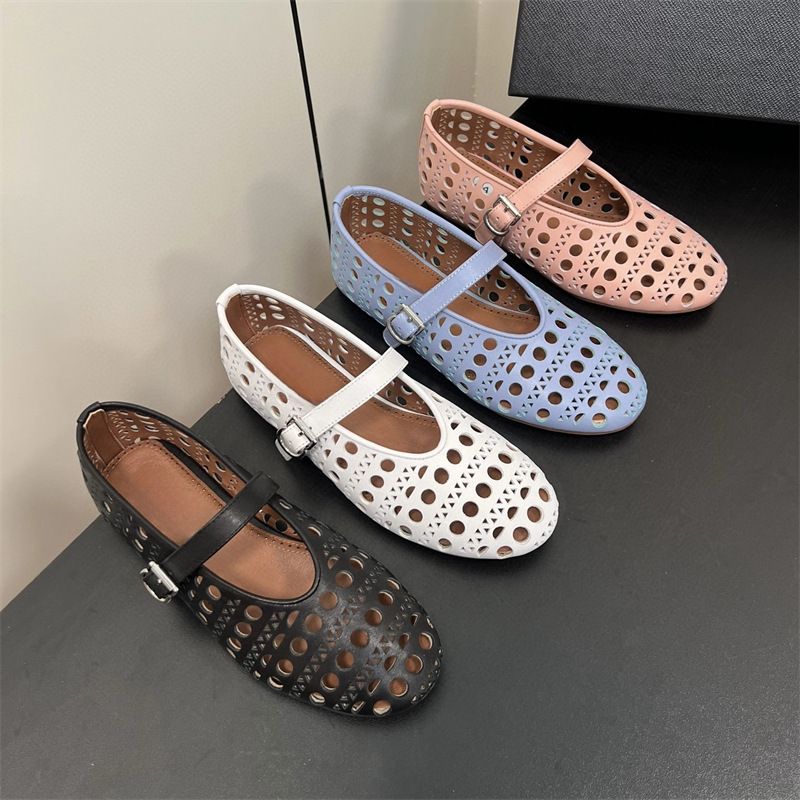 2024 Ala Fashion Show ~ Hollow fund moale Ballet Flat cu găuri Mary Jane Pantofi singuri pentru femei