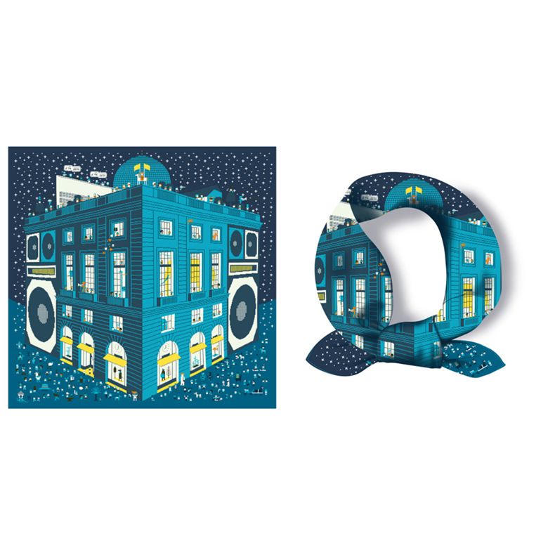 2023 Autumn/Winter New Building Printed Women's Small Square Scarf Silk Scarf Fashion Simulation Silk Scarf