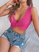 2024 Spring Summer Solid Color Knotted Cropped Knit Top Vacation Blouse Women's Fashion