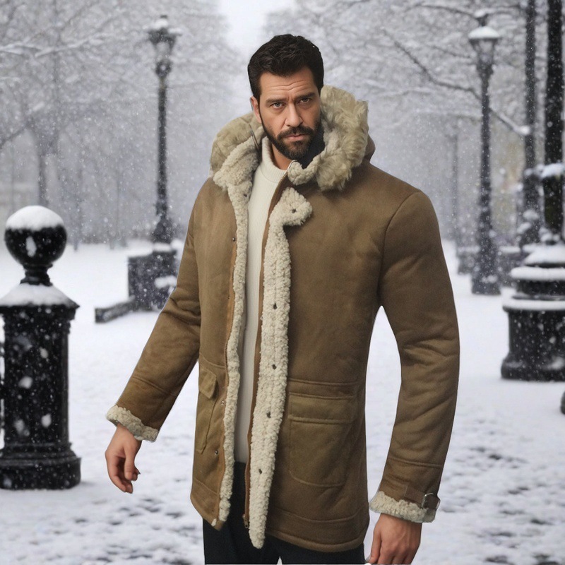 Produs nou de iarnă 2024: Palton bărbătesc integrat din piele și blană, jachetă din piele întoarsă îngroșată