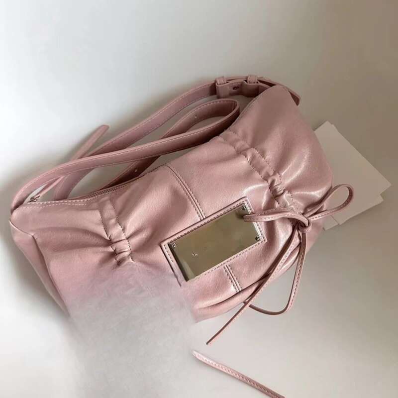2025 Korean Niche Metal Tag Bow Drawstring Bag Handbag