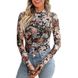 2025 New Women's Semi High Neck Long Sleeved T-shirt Sexy Y2K Mesh Printed Top