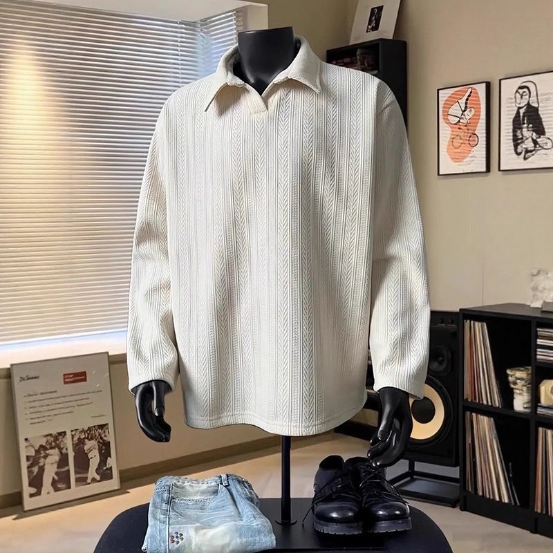 2025 Plus Size 8XL Wear 150kg Dark Gray Wheat Ear Pattern Turn-down Collar Sweatshirt Men Spring Autumn Trendy Polo