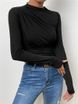 2024 Solid color slim fit bottom sweater with versatile pleated design, long sleeved T-shirt, women's top