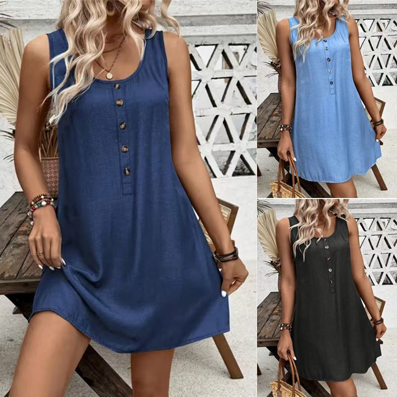 2025 Summer New Fashionable Casual Button Tank Top Dress