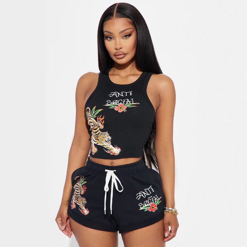 2025 Women's Fashion Positioning Printed Tank Top Shorts Set