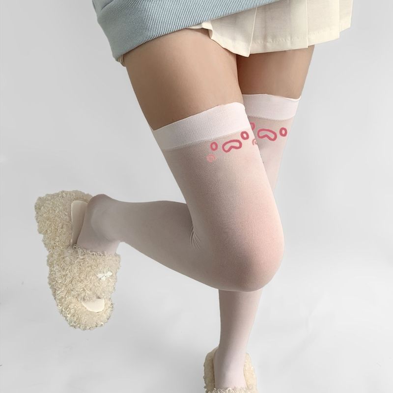 【Fast Refund】2D Expression Long High Tube White Stockings Emoji Cute Print Subculture Over-the-Knee Socks Pure Desire Socks