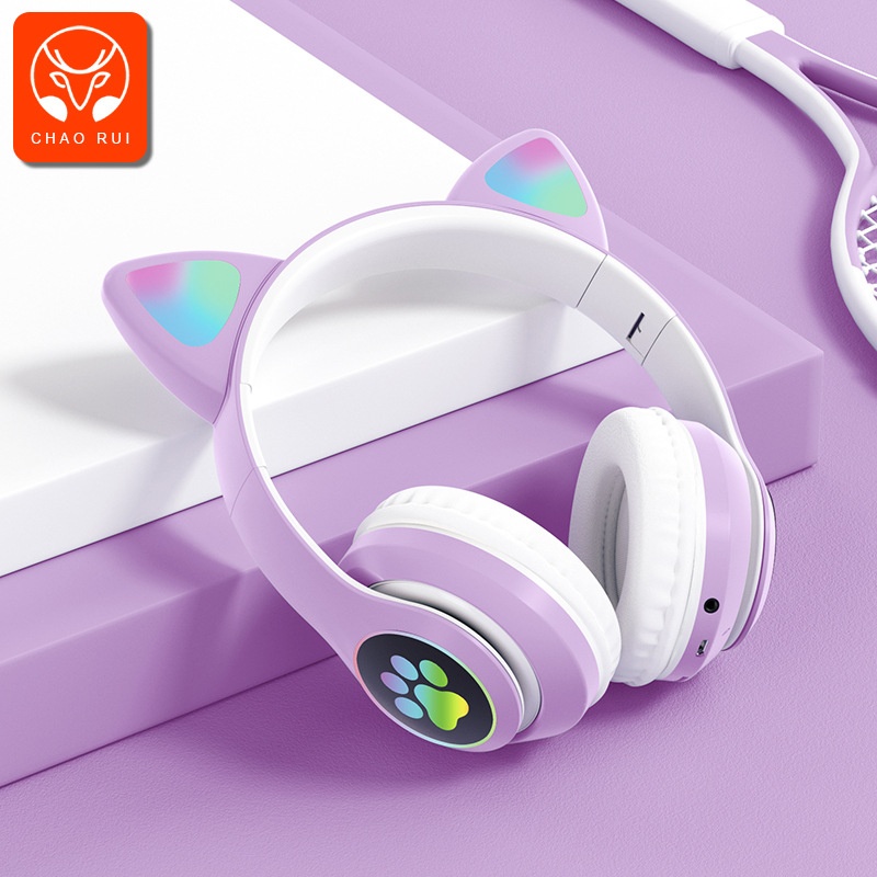 3c Cat Ear Bluetooth Headphones Over-Ear Compatible With Huawei And Wireless Sports Running Gaming Headset 5.3