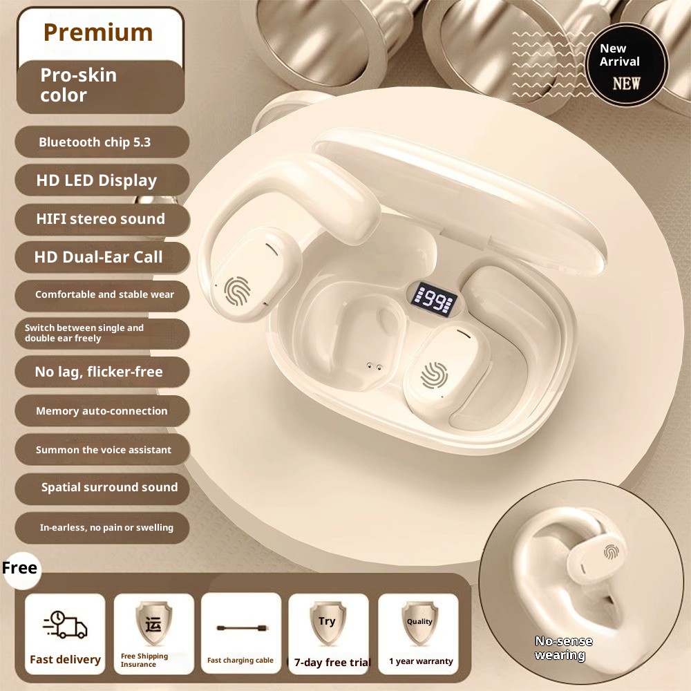 Brand:Neutral,Transmission Range:15m,Functionality:Ultra-long battery life, call function, NFC function, voice control, supports music, sleep mode, digital display screen, gaming low latency, other features,Bluetooth Protocol:5.4,How to use:Clip-on Earrings,Is it single or double ear?:Bilateral Stereo Sound,Color:Black, white, skin tone,Main downstream platforms:, Other,Main sales regions:Northeast Asia, Middle East, Others,We have authorized private labels available:No,Is it exclusively for cross-border export supply?:yes,Customizable:Support,Type:GT280,Is it a patented source product?:No,Mold Type:Private Model,What type of chip is it?:Jerry,Battery life:More than 8 hours,Year/Season of Release:2023,Style:creative design,Waterproof performance:IPX5,Material:ABS
