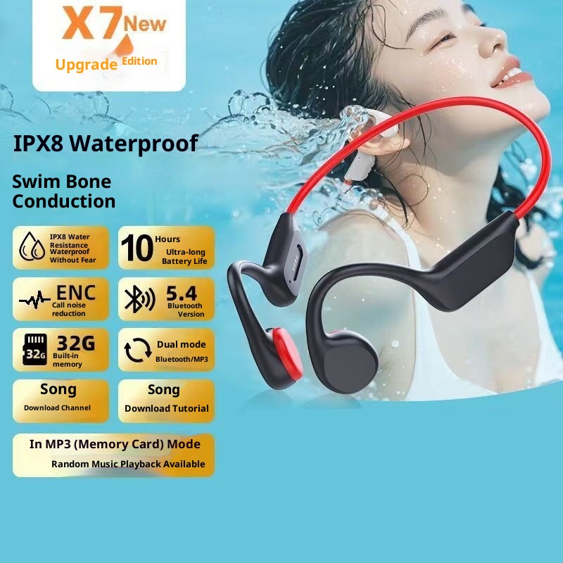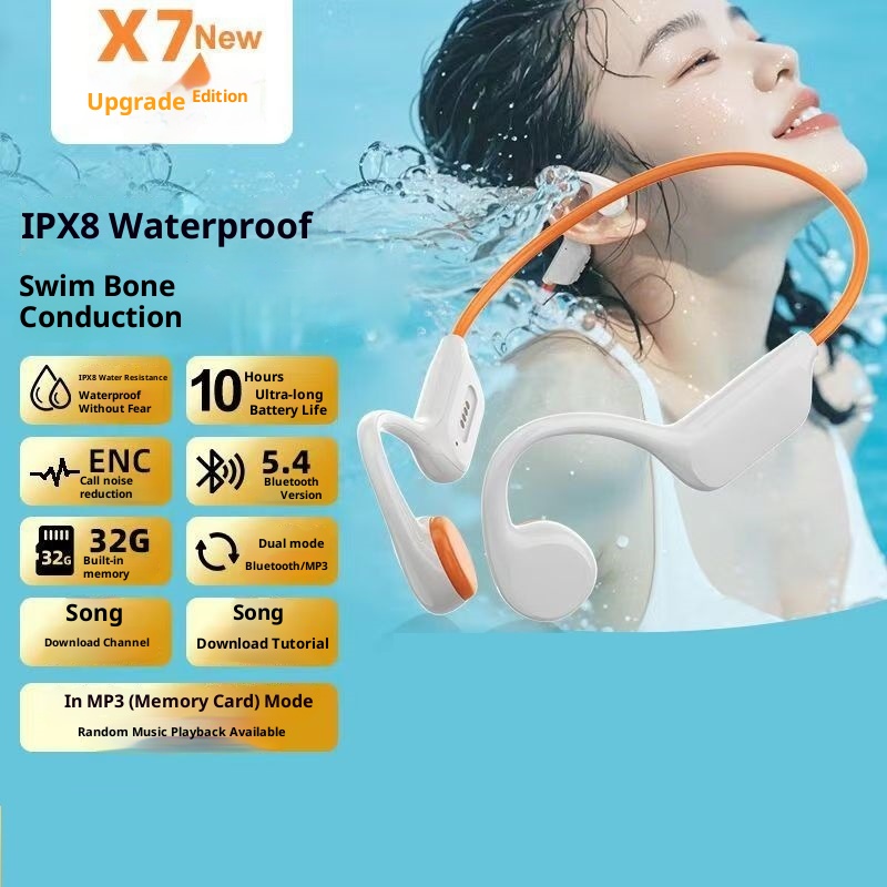 Brand:Neutral,Transmission Range:10m,Functionality:Waterproof, Noise Cancelling,Bluetooth Protocol:5.3,How to use:Head-mounted,Is it single or double ear?:Bilateral Stereo Sound,Color:Black Red 32G+8-Level Waterproof Swimming, Black 32G+8-Level Waterproof Swimming, Orange White 32G+8-Level Waterproof Swimming, Black X7 Upgraded Version Bluetooth 5.4 Better Sound Quality, Black Red X7 Upgraded Version Bluetooth 5.4 Better Sound Quality, Orange X7 Upgraded Version Bluetooth 5.4 Better Sound Quality,Main downstream platforms:, , , , Independent Station, ,Main sales regions:Europe, South America, Southeast Asia, North America, Northeast Asia, Middle East,We have authorized private labels available:No,Is it exclusively for cross-border export supply?:yes,Customizable:Support,Is it a patented source product?:No,Mold Type:Private Model,What type of chip is it?:Jerry,Battery life:More than 8 hours,Year/Season of Release:2022.5,Style:National Trend Style,Waterproof performance:Ipx8,Affordable Alternative Brand:Neutral,Material:Plastic