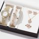 Set de 6 ceasuri de damă cu cuarț din oțel fără solzi și diamante + set de bijuterii cu inimă