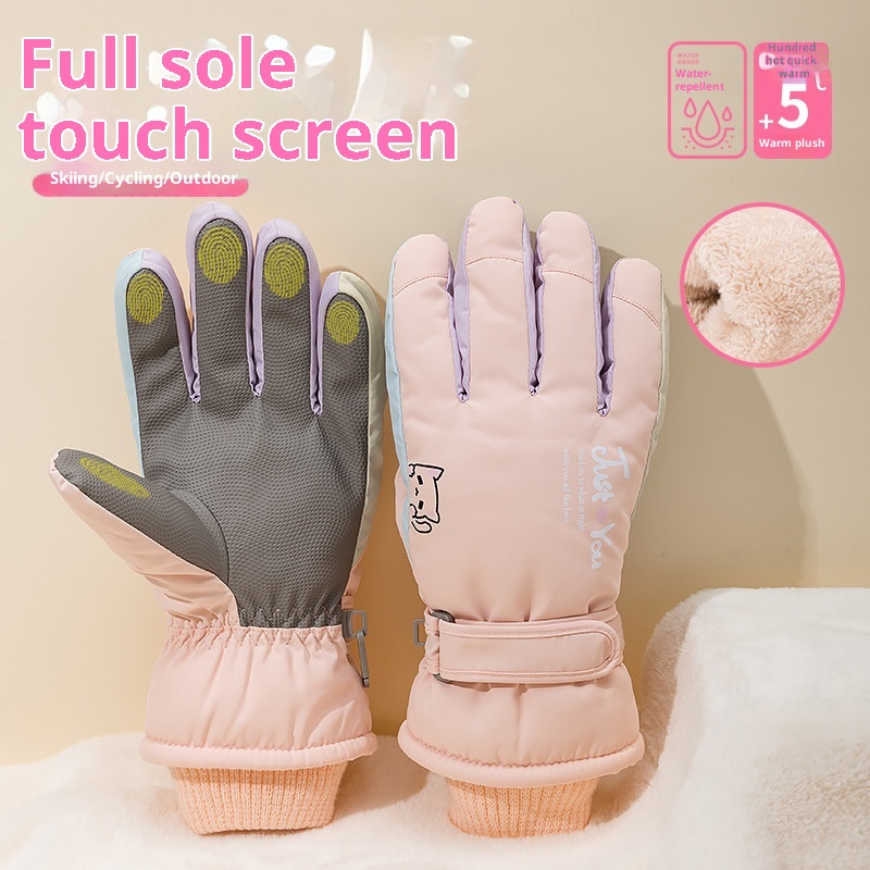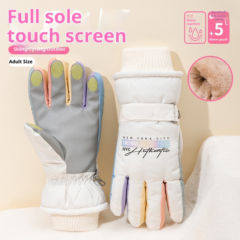 ActiveGo Full Palm Touchscreen Women Winter Fleece Lined Thickened Cold-Proof Outdoor Riding Motorcycle Warm Non-Slip