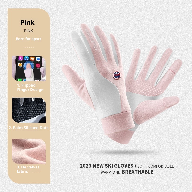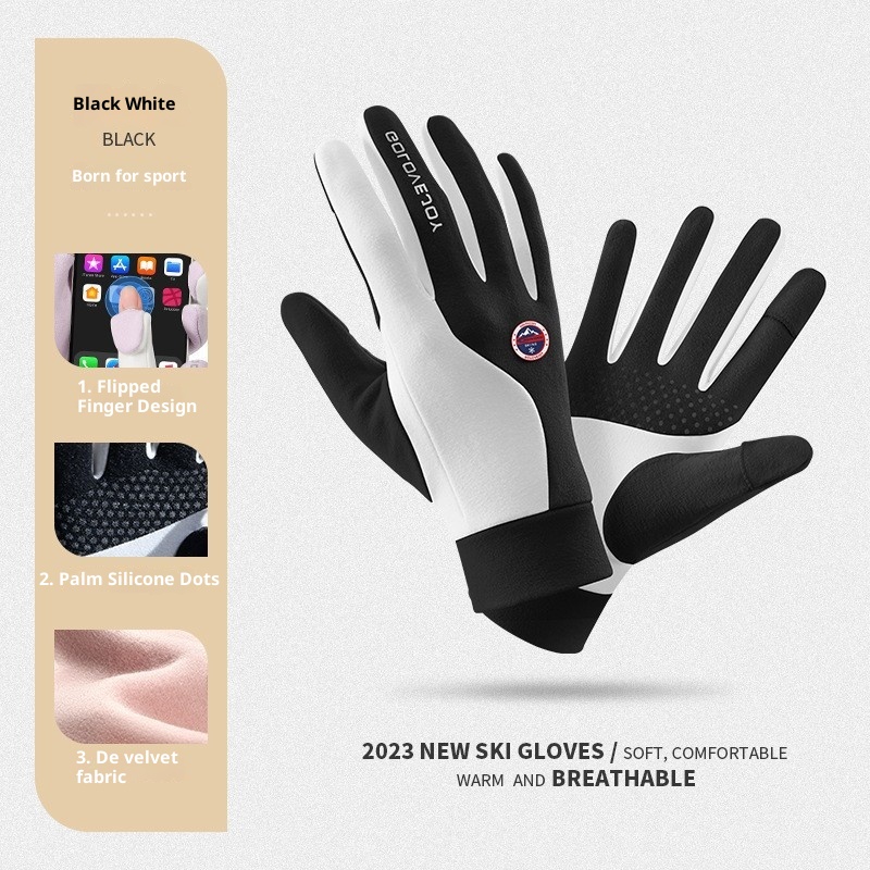 ActiveGo Winter Japanese Ski Inner Men's Outdoor Fleece-Lined Warm Windproof Touchscreen Non-Slip Cycling Gloves DB66