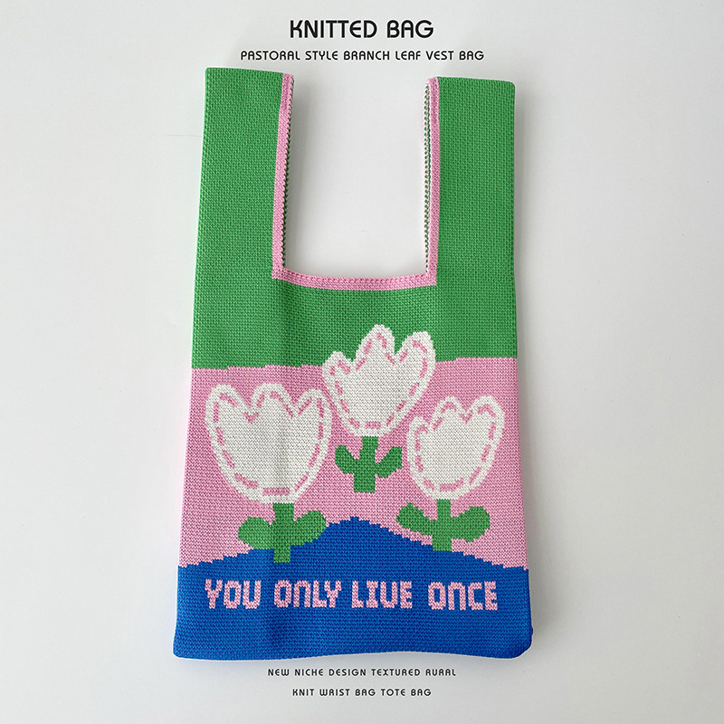 Bag design for female niche girls Love color matching knitted handbag Single shoulder bag Tank top Vest bag