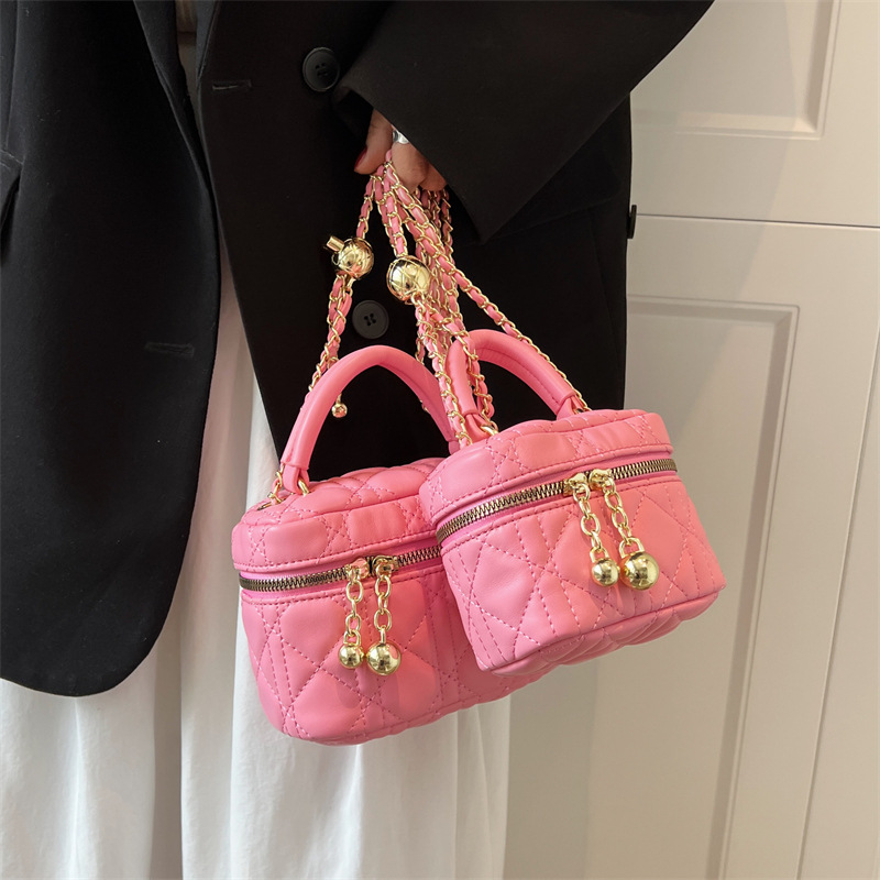 Beibei Shangpin 2024 New Korean Edition Lingge Chain Single Shoulder Diagonal Straddle Handheld Xiangjia Box Bag Handbag