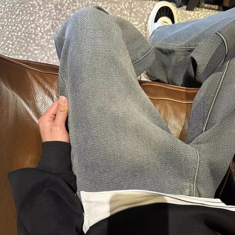 Star patterned jeans, men's trendy straight leg loose leg long pants, men's American washed casual pants, spring and autumn