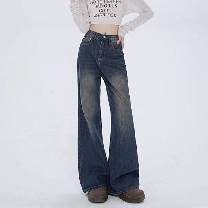American style high street micro flared jeans for women's autumn new style, high waist, loose fit, wide legs, and a sense of sagging. Floor length pants are trendy