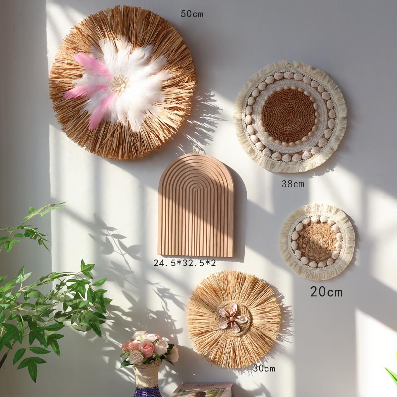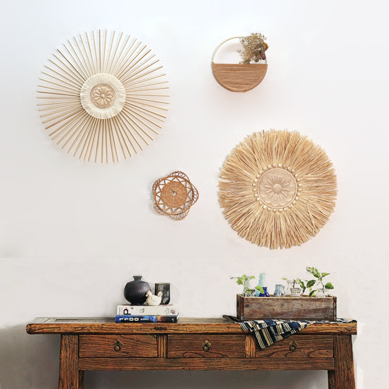 Bohemian Wall Decoration Homestay Straw Hanging Decoration Wall Decoration Background Wall Rattan Round Wall Decoration Concealing Hanging Ornament