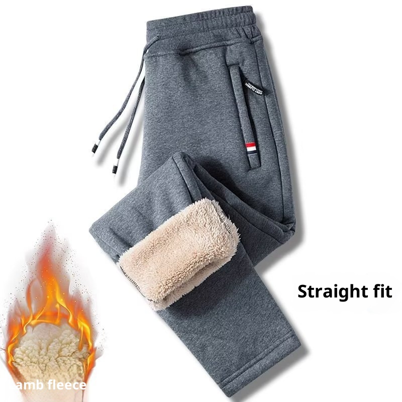 boy Autumn Winter Lamb Wool Casual Men's Fleece Lined Thickened Plus Size Loose Fit Joggers Cuffed Straight Leg Warm Pants