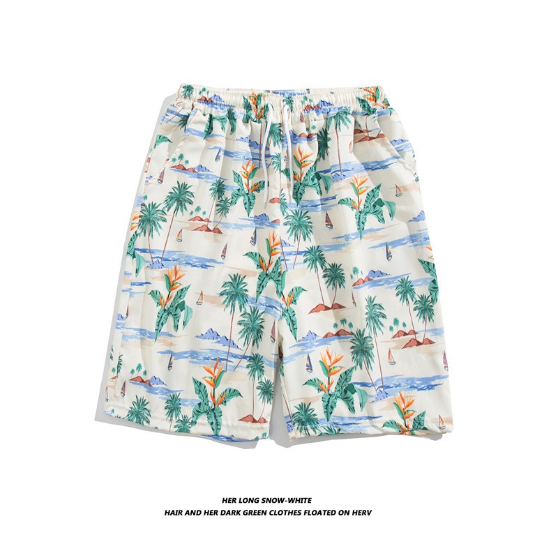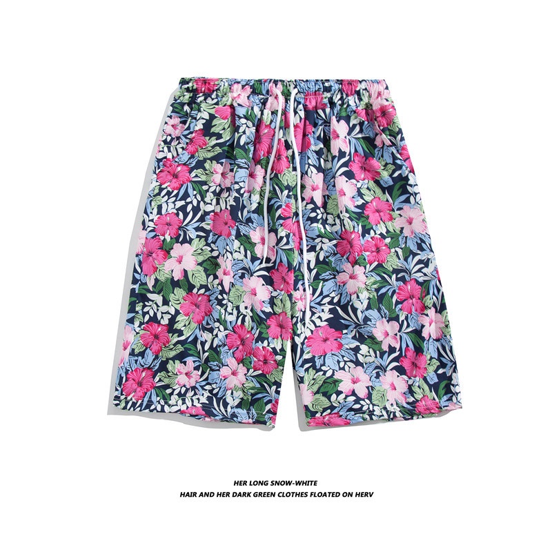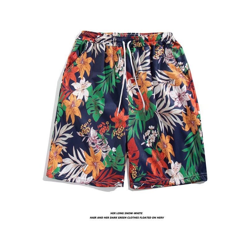 boy Hawaiian Casual For Men, Loose Fit, Versatile Floral Beach Vacation Trendy Couple Shorts
