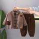 Boys 2024 New Long Sleeved Teddy Bear Sweater Autumn Trendy Brand Loose Casual Children's Knitted Jacket Three Piece Set