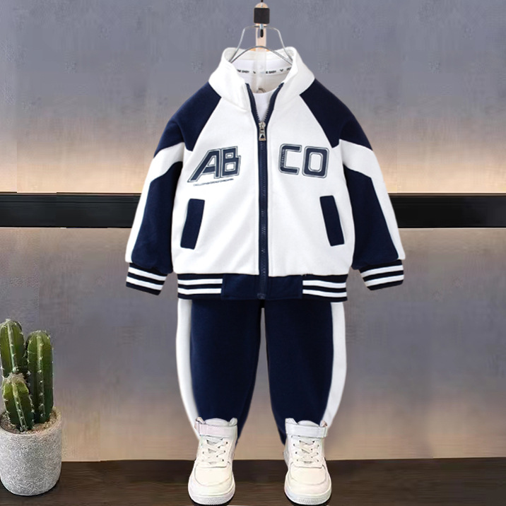Boys Spring and Autumn New Children's Clothing Handsome Small and Medium Children's Set Baby Sports Zipper Two Piece Set Trendy