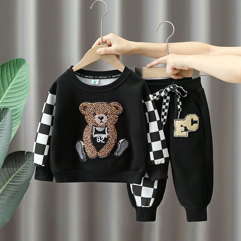 Boys' Spring and Autumn Set for Children 2023 Handsome Children's Puppy and Handsome Autumn Clothes Explosive Street Sports Men's Treasure Sweater Two Piece Set