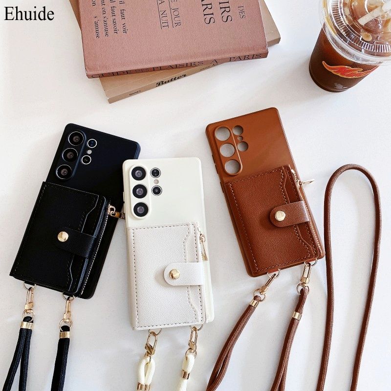 Carcasă de portofel de lux pentru Samsung Galaxy A16 A26 A36 A06 A56 A55 A35 S25 Edge S24 Ultra Crossbody Lanyard din piele PU