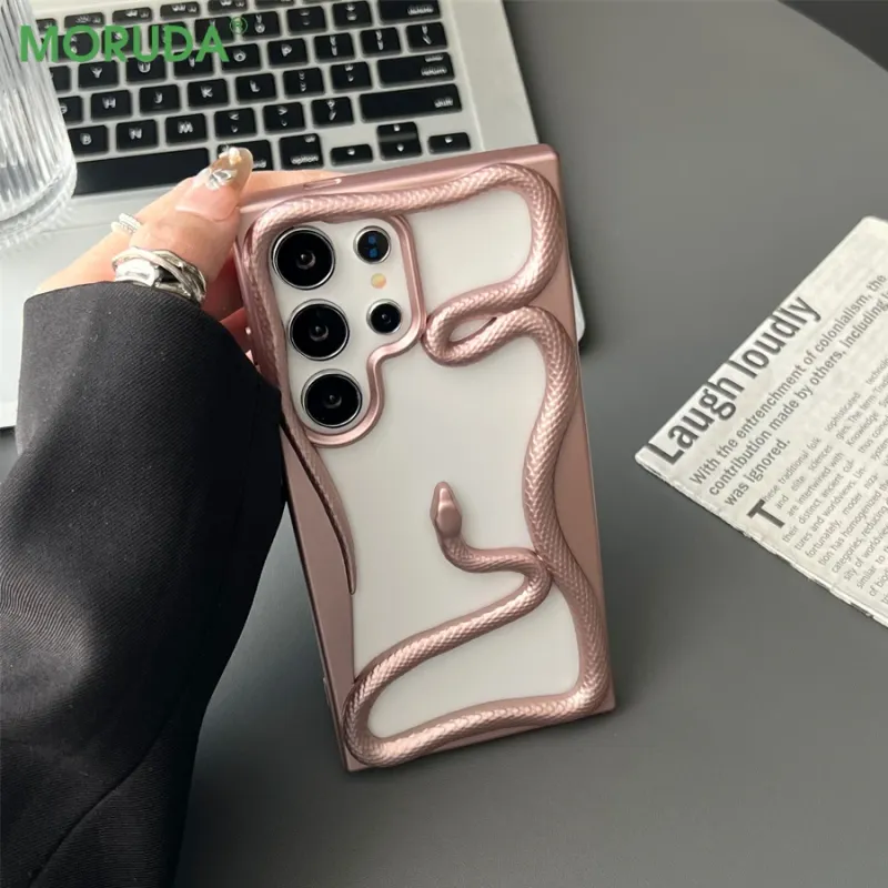 Plating 3D Snake Shaped Heat Dissipation Phone Case For Samsung Galaxy S25ultra S24 S22 S23 Ultra Matte Hollow Soft Cover