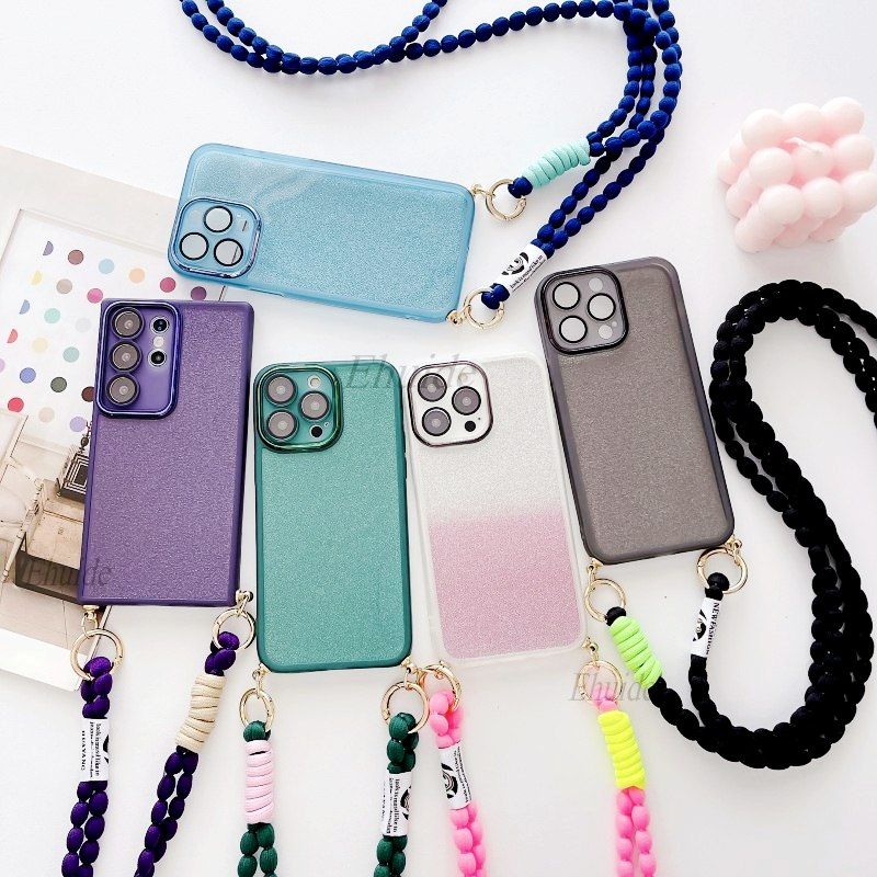 Case For iPhone 16 Pro Max 11 12 13 14 15 Plus X XR XS Max Glitter Neck Crossbody Cord Strap Plush Lanyard Soft Clear TPU Cover