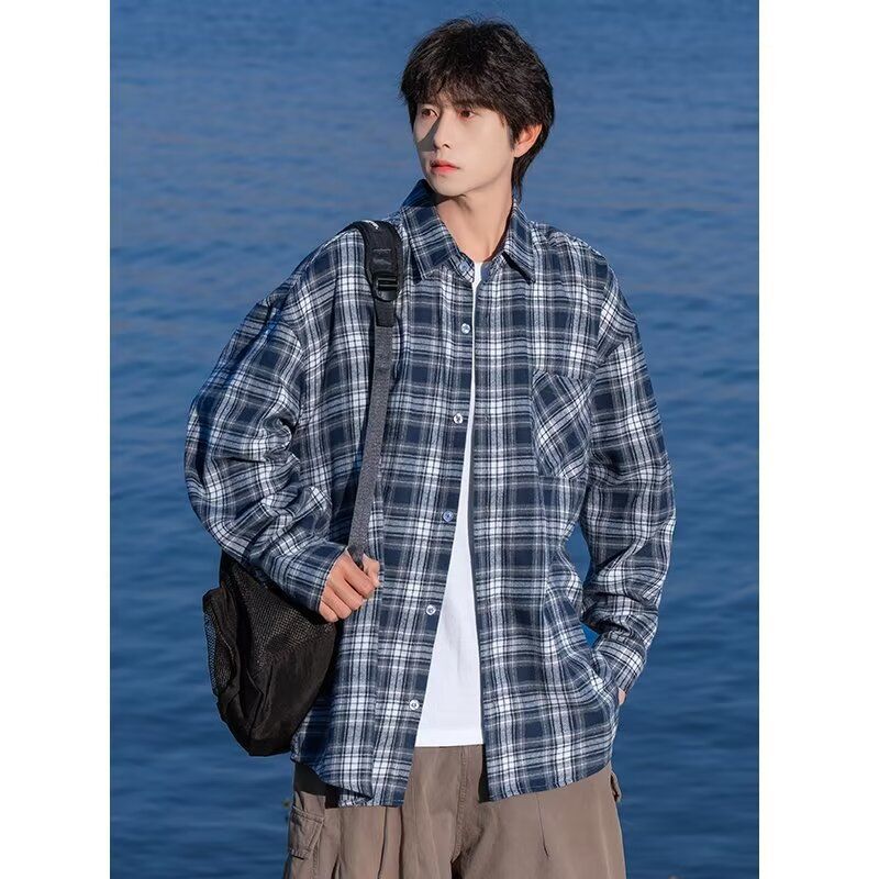 Checkered long sleeved shirt for men in spring and autumn, loose and trendy brand, simple and versatile, suitable for teenagers and couples, high-end and casual shirt