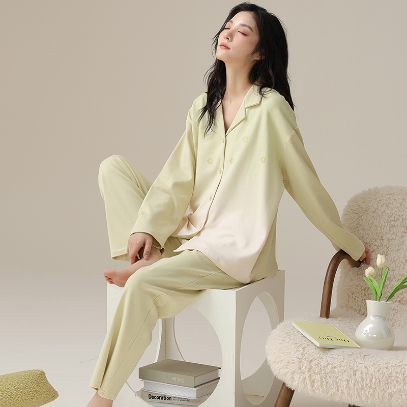 ChicShe 100% Coon Pajamas For Women Spring And Auumn 2025 New Long Sleeve Women's Cardigan Swee Caroon Wearable Homewear