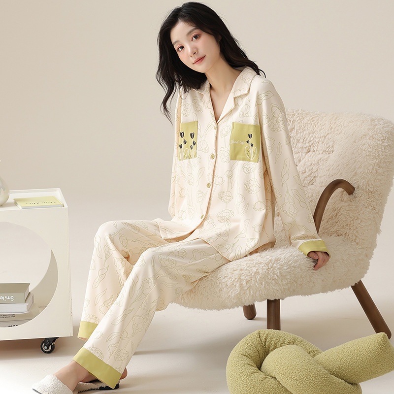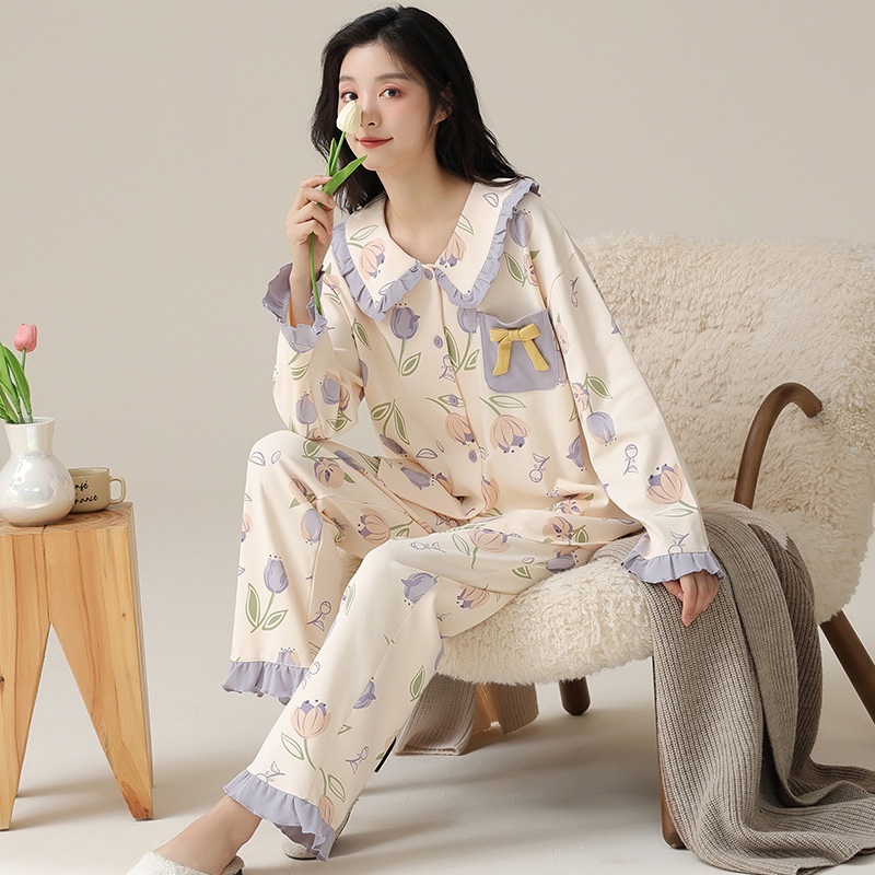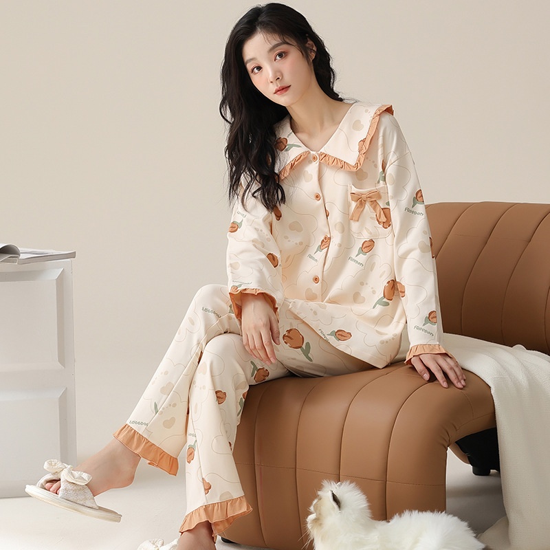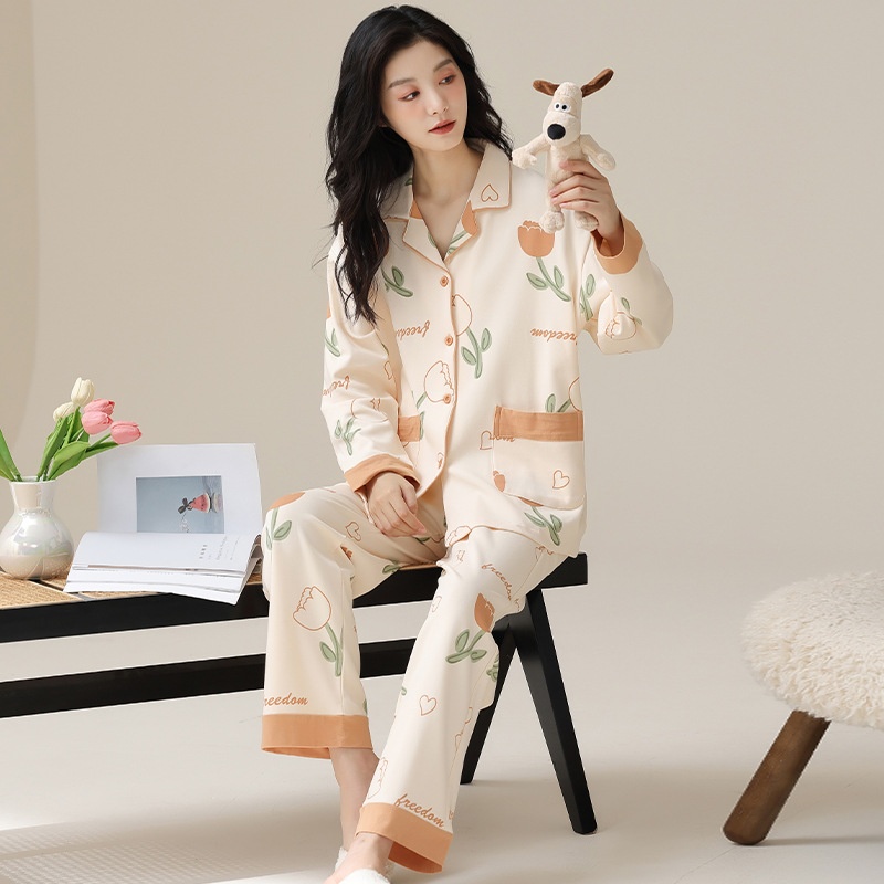 Product Category:Set,Fabric Name:100% Cotton,Design:Cardigan,Main fabric composition:Cotton,Thickness:Average,Fabric Thickness and Weight:Moderate 181-200g/m²,Collar Style:Turn-down Collar,Sleeve Length:Long Sleeve,The length of the pants:Long Pants,Functionality:Casual, breathable, sleep, home, comfortable, suitable for outdoor wear,Time to market:Autumn 2025,Suitable for the season:Spring, Autumn,Applicable to all categories of people:young women,Applicable Scenarios:Outdoor, home use,Color:A#20966, A#20955, A#20791, A#20957, A#20948,A#20947,A#20946, A#20945, A#20943, A#20939,A#20940,Size:M, L, XL, 2XL,Origin:Puning,Item Number:A#20966,Is it exclusively for cross-border export supply?:No,Main fabric ingredient content:100%,Style:Cartoon
