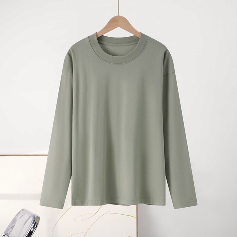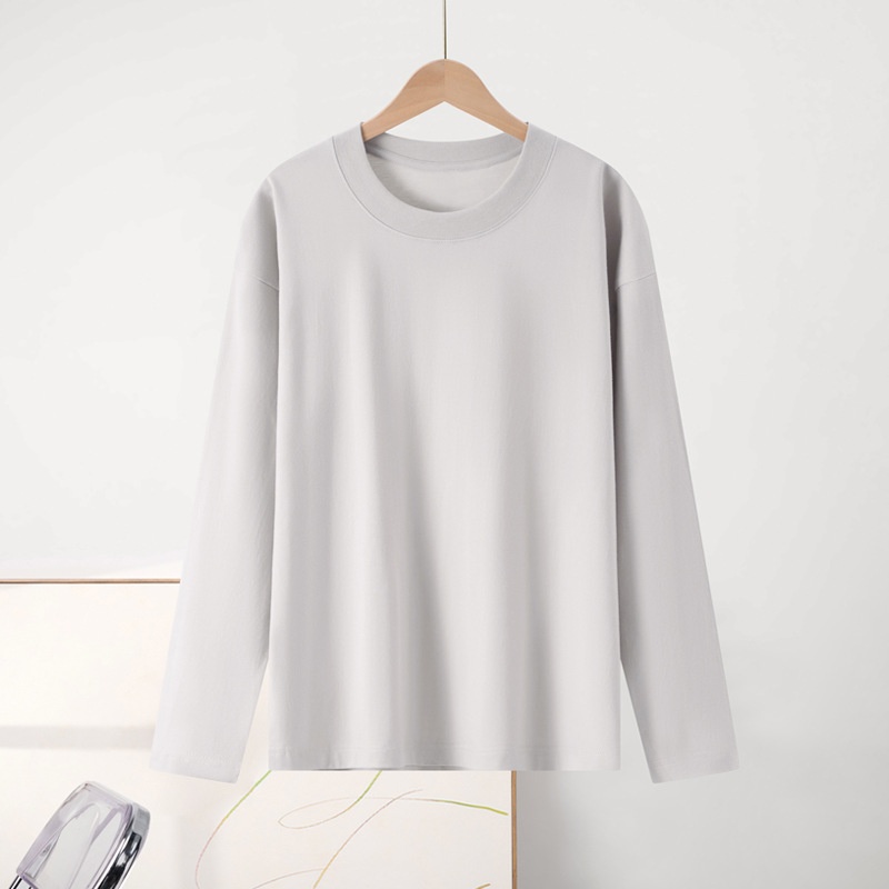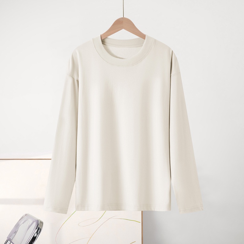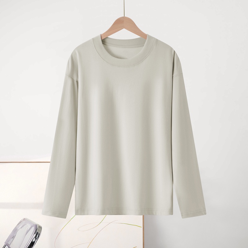 ChicShe 230g Simple Inner Layer Base Shirt Women, Autumn Long Sleeve Pure Cotton Regular Shoulder T-Shirt For Men, Round Neck