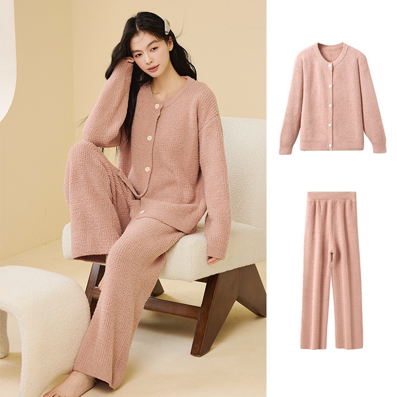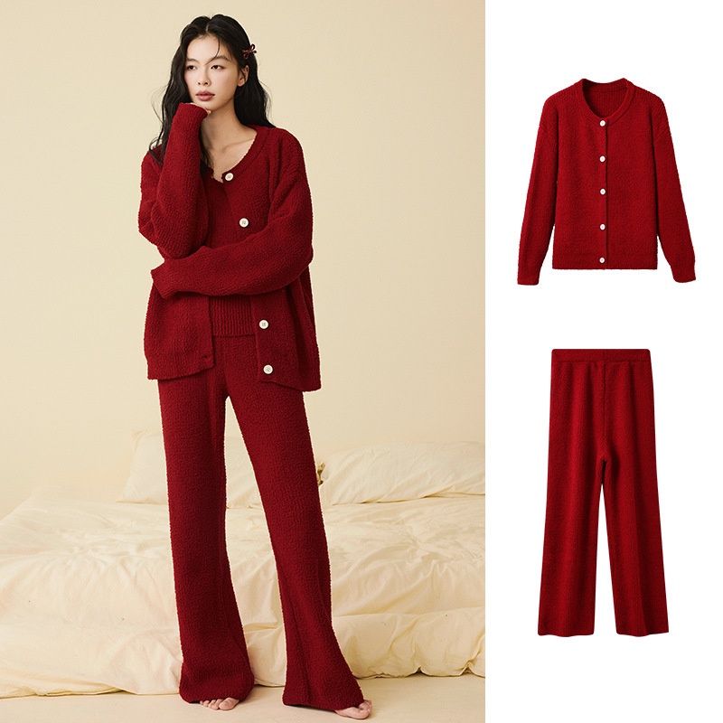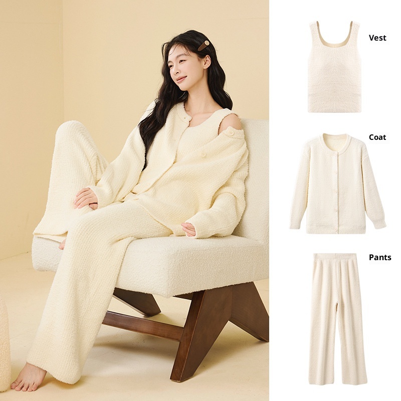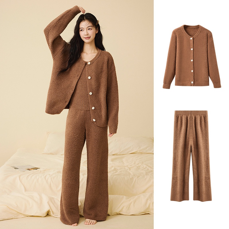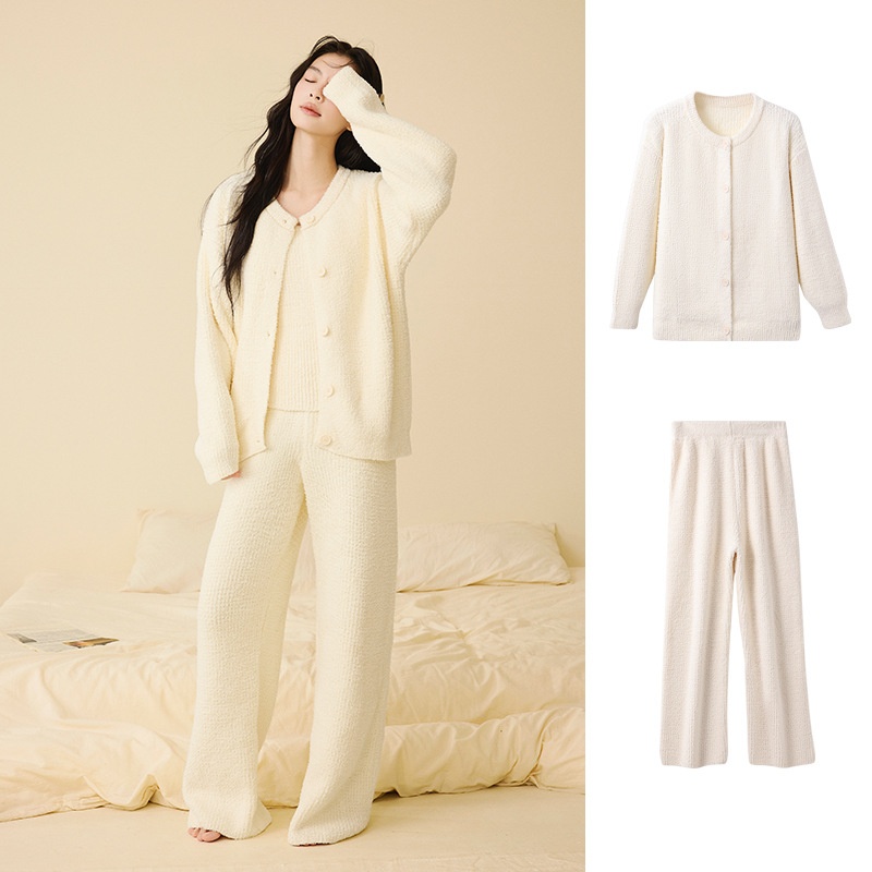 ChicShe New Soft Fluffy Half-Fleece Pajamas Women, Autumn And Winter Korean Style Elegant Camisole Three-Piece Set, Suitable For