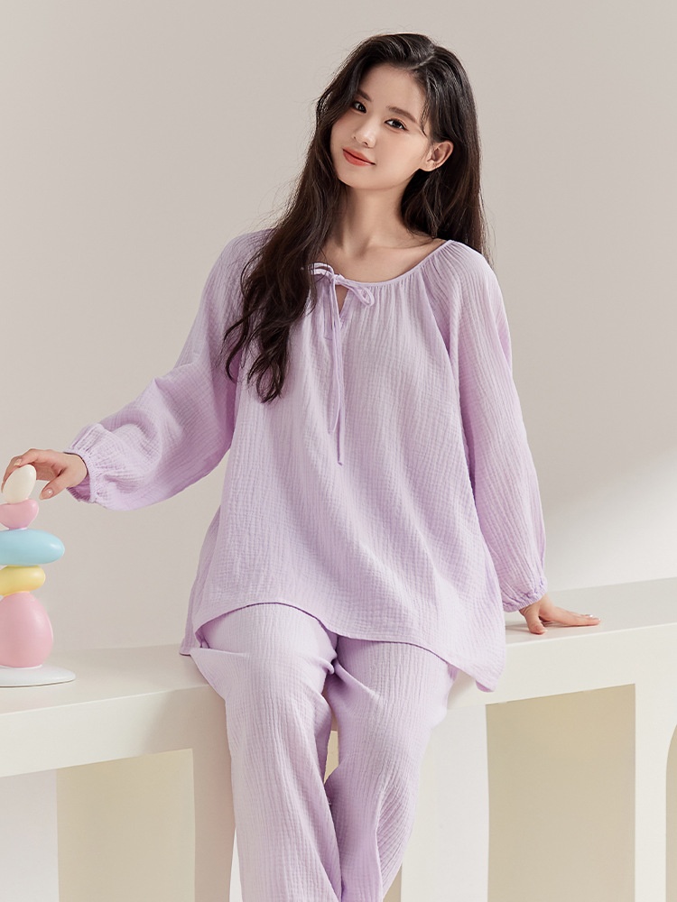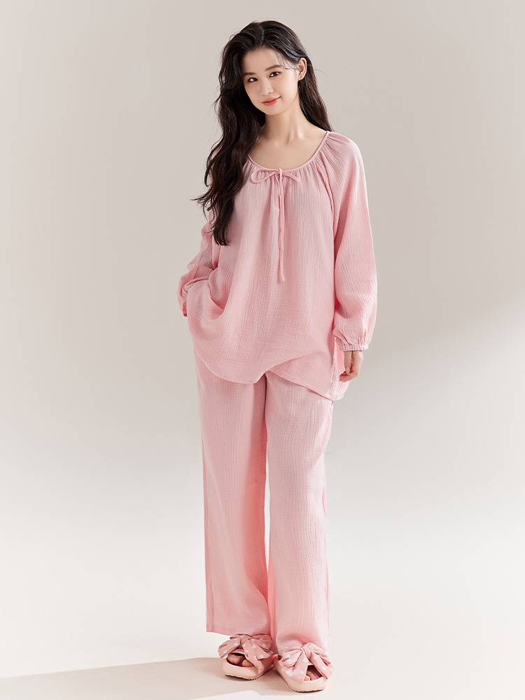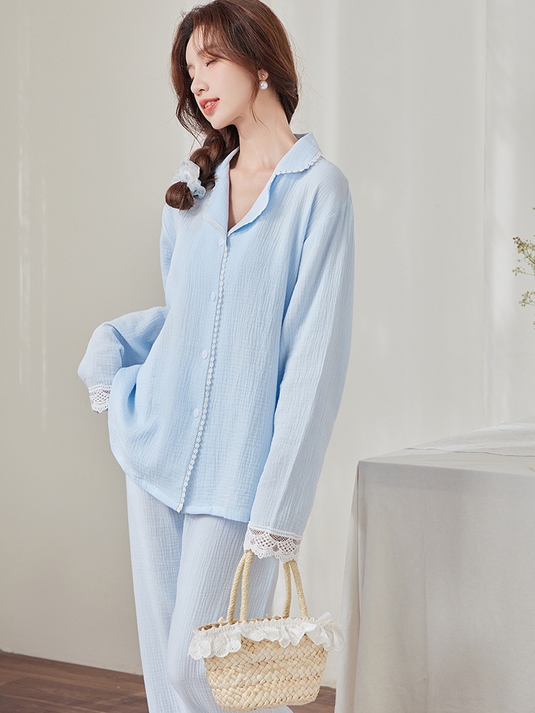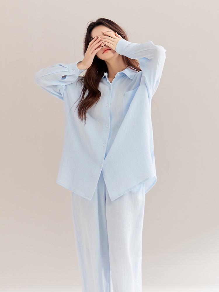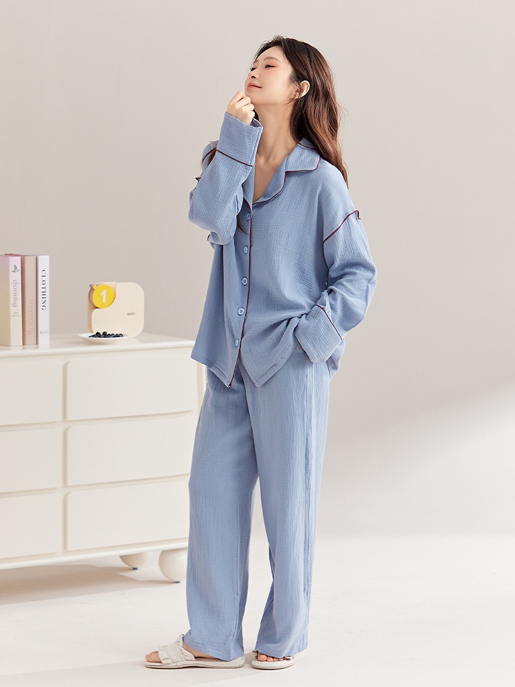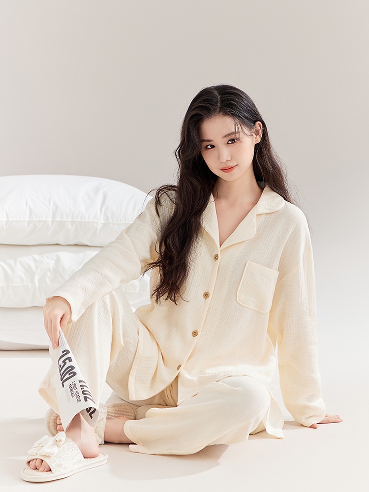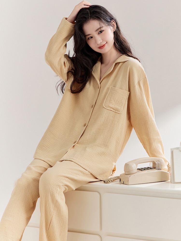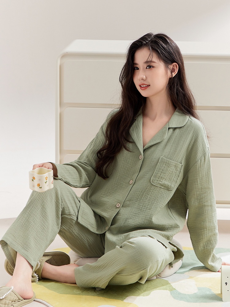 Product Category:Set,Fabric Name:100% Cotton,Design:Cardigan,Main fabric composition:Cotton,Thickness:Average,Fabric Thickness and Weight:Moderate 141-160g/m²,Collar Style:Turn-down Collar,Sleeve Length:Long Sleeve,The length of the pants:Long Pants,Functionality:Casual, breathable, sleep, home, comfortable, suitable for outdoor wear,Time to market:Autumn 2025,Suitable for the season:Winter, Spring, Autumn,Applicable to all categories of people:young women,Applicable Scenarios:Outdoor, home use,Color:24046-1-B,24046-B,YM24045-A,YM24045-B,YM24040-A,YM24040-B,YM24041-A,YM24041-B,YM24041-C,YM24041-D,YM24039,Size:M,L,XL,Brand:Yanman,Origin:Taizhou,Item Number:Gauze Nightgown,Is it exclusively for cross-border export supply?:No,Main fabric ingredient content:100%,Style:Fairy Style