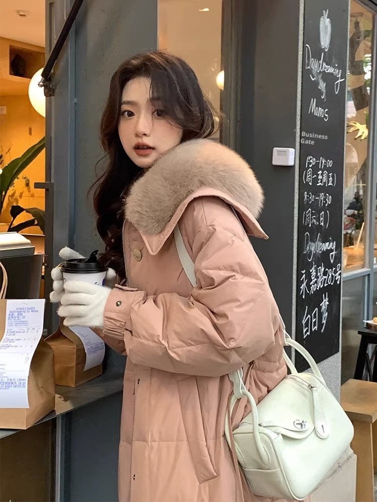 filling material:White Duck Down,Fleece Content:51%~55%,Brand:Ma Ruyu,Item Number:0911,Thickness:Thick,Fabric Name:Corduroy,Main fabric composition:Polyester Fiber,Design:Loose Fit,Collar Style:Navy Collar,Does it have a fur collar?:With a fur collar,Faux fur collar material:Fox fur,Is it detachable?:Non-removable,Length of clothing:Mid-length 65cm