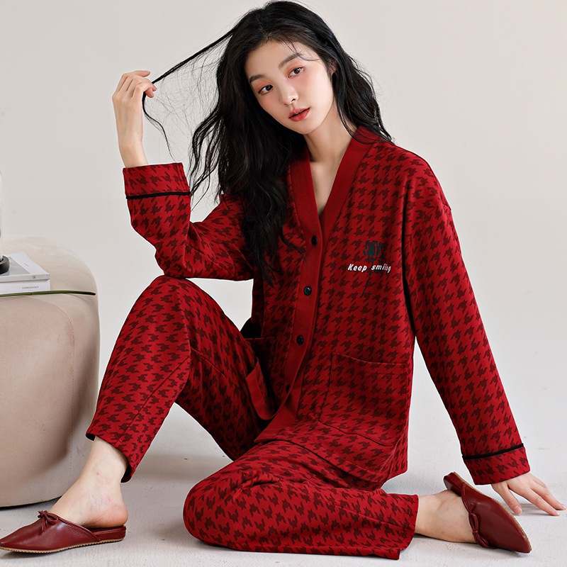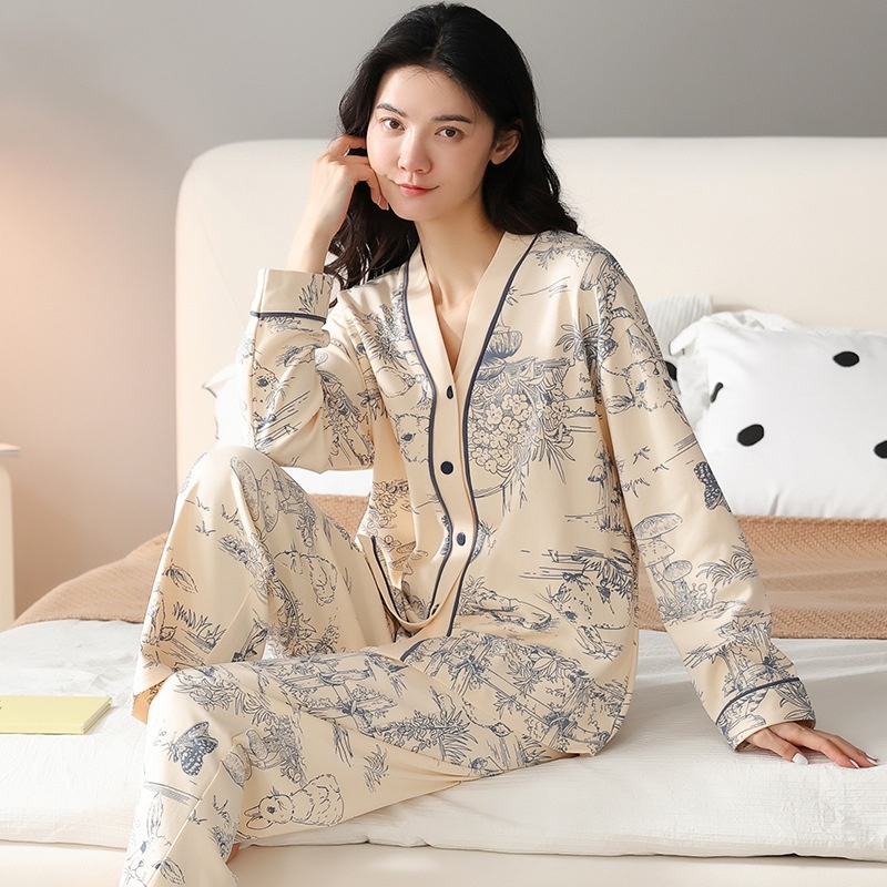 ChicShe Women's Pajamas Autumn 2023 New Pure Cotton Long Sleeve High-end Korean Style Casual Loose Double-sided Kimono Set