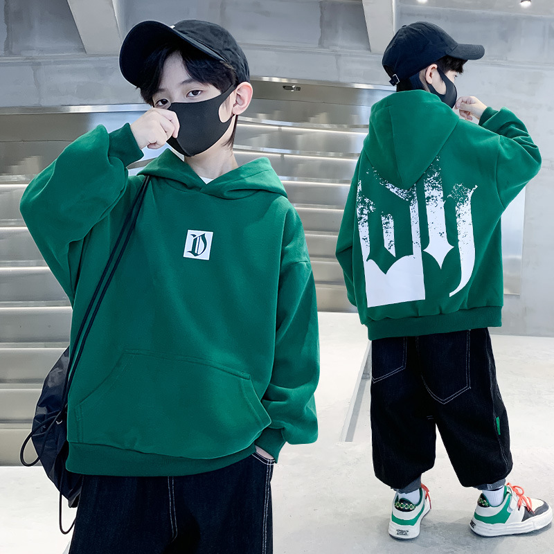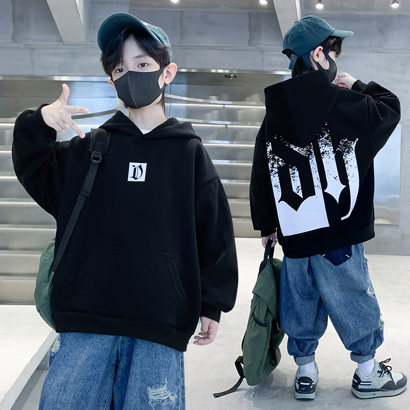 Children's clothing, boys' autumn hoodie 2024 new style, personalized letter printed children's winter velvet top trend