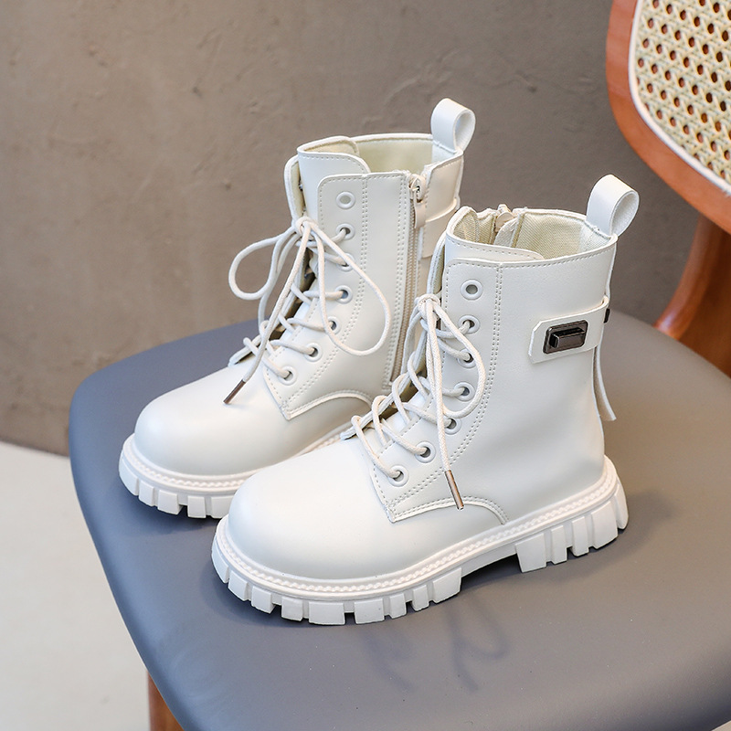 Children's Martin boots, girls' plush soft sole leather boots, autumn and winter westernized British style short boots,