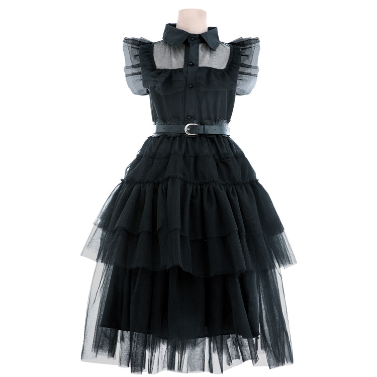 Adams Cos Wednesday Dress Black Dress Set Mesh Cake Princess Dress Halloween Costume