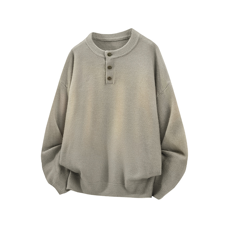 Cleanfit Henley Knit Sweater – Heavyweight Relaxed Pullover With Ribbed Hem