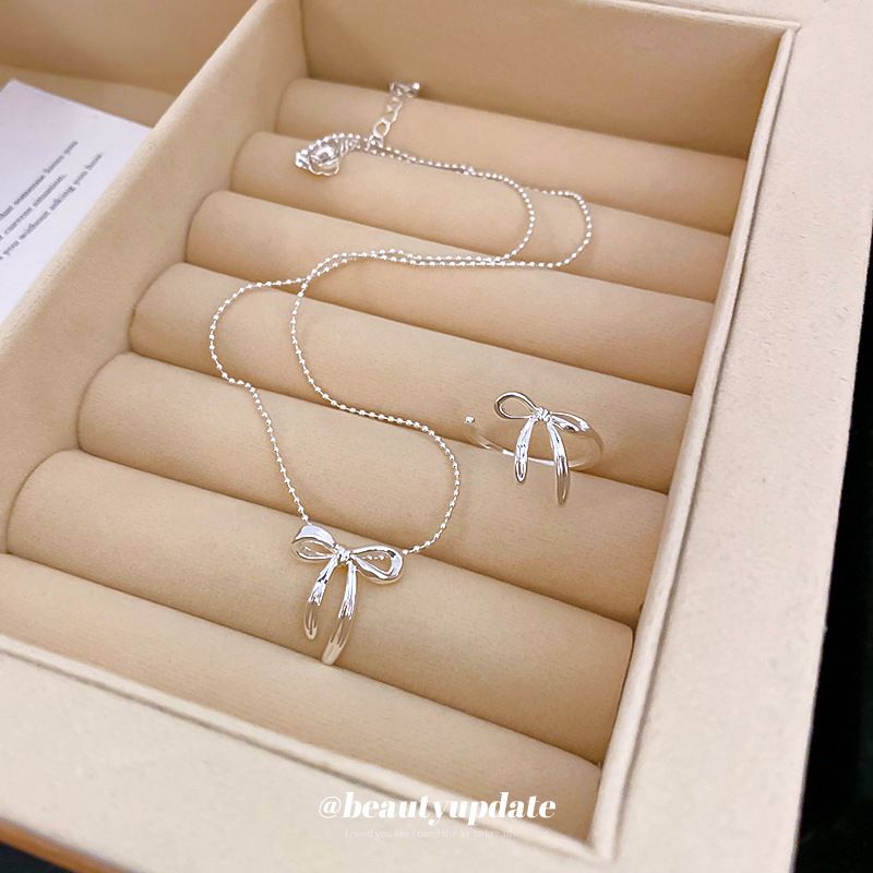 Colier cu inel cu arc și vânt rece, inel de nișă de înaltă calitate, set de bijuterii cu temperament ușor și luxos pentru femei